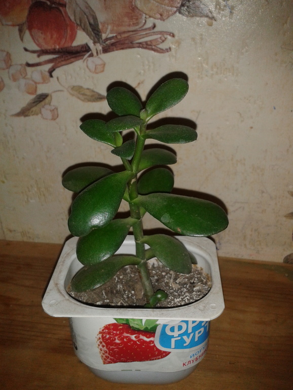 4. Толстянка в стаканчике из-под йогурта.