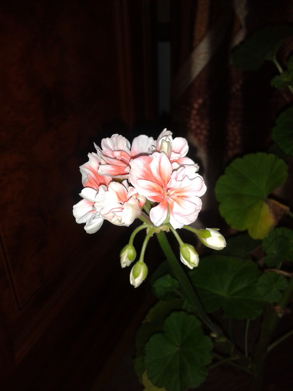 1. Пеларгония в глиняном горшке. Сейчас цветет.
