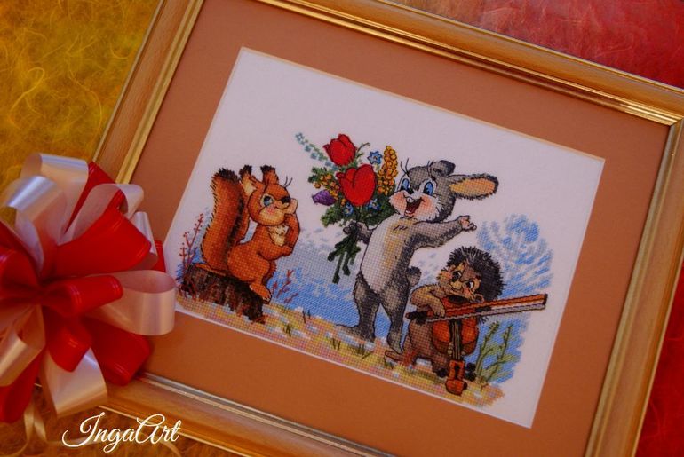 Оформилась моя лисичка. Дизайн очень понравился сразу как увидела в новинках у Дим. Вышивала по оригинальному набору. На работу ушли 3 недели, из всех дизайнов Дим, которые я вышивала, лисичка самая лёгкая - весь фон вышивается полукрестом, контур очень мало))