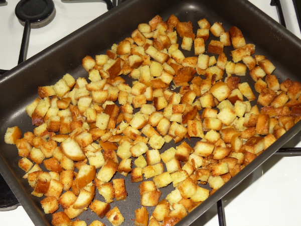 Ну и под конец, из соображения экономии электроэнергии, приготовила чесночные гренки с солью и оливковым маслом, для тыквенного супа-пюре.