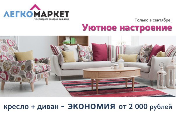 Акция в ЛегкоМаркет - сэкономьте при одновременной покупке дивана и кресла от 2 тысяч рублей!