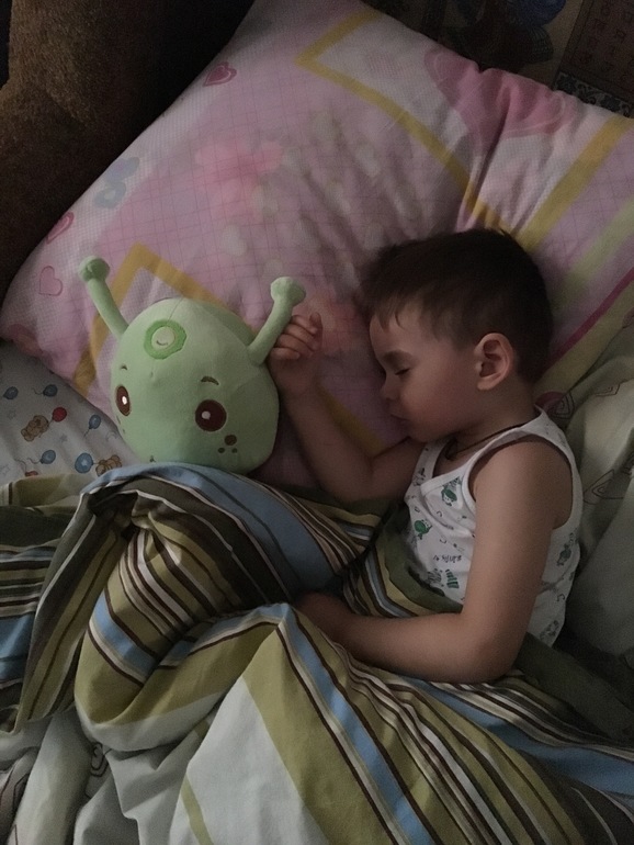 Спит мой герой, изредка посапывая. Какой же он умница!! Очень горжусь своим сыночком!!