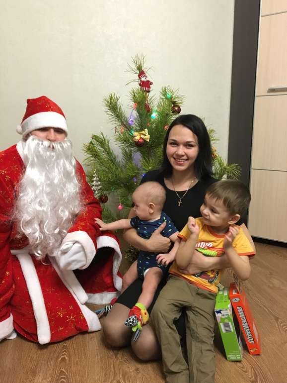 Темка даже не напугался и не застеснялся!! Рассказал стишок и получил "много-много машинок", как и заказывал) И Егорка получил подарок и тоже не испугался) Заинтересовался и ощупывал)