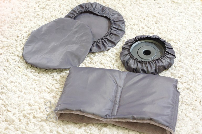 Муфта на меху, утеплённая синтепоном. Не продувает, не промокает, и очень приятная к рукам) в комплекте чехлы на колёса для 3-колесной коляски по индивидуальным размерам. На заказ, от 1300 руб.