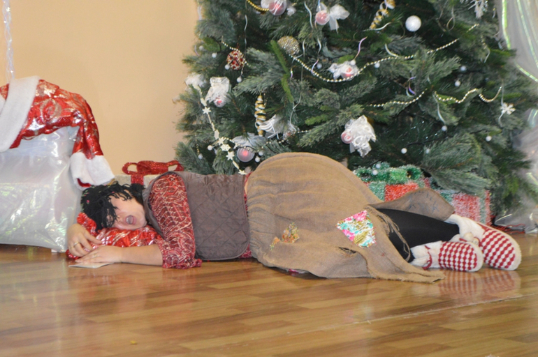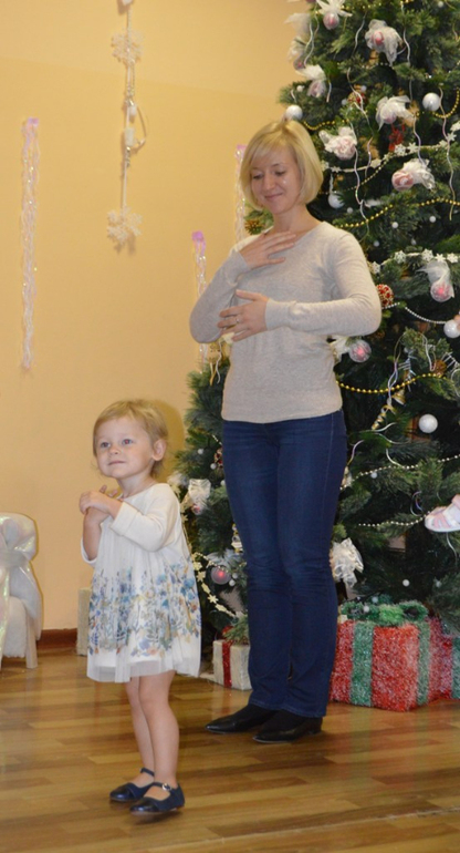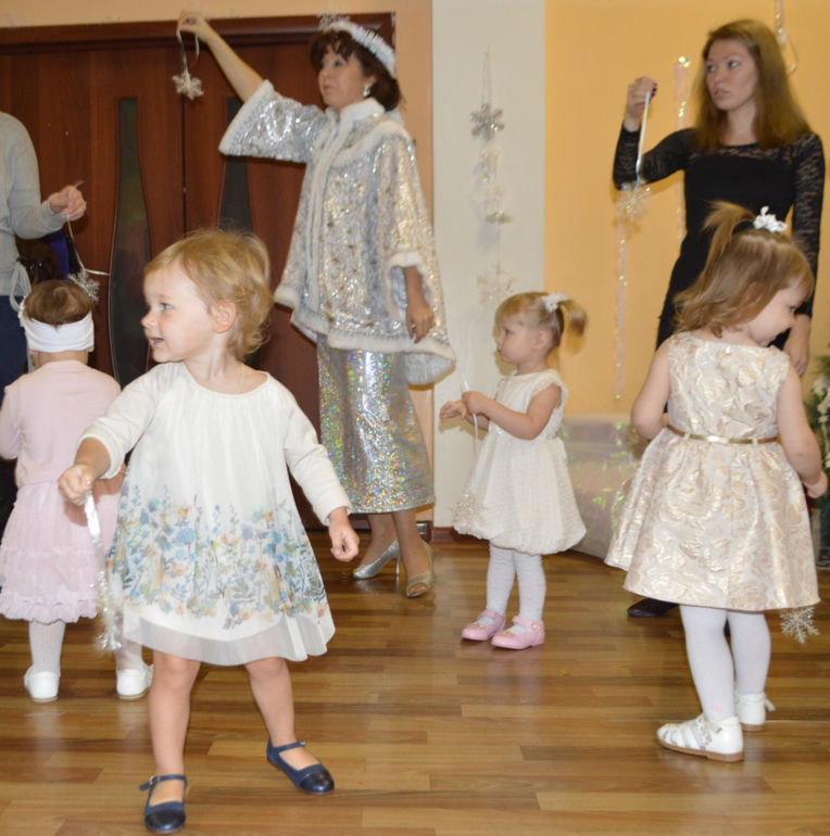 Приехали мы в Центр за 20 минут до начала мероприятия, чтобы переодеться, припудрить носики и привыкнуть к большому количеству деток в небольшом помещении. Контакт со всеми был найден, Лера то и дела подходила к мальчикам и девочкам гладила по спине и говорила: "Не бойся, скоро Дед Мороз прийдёт")))