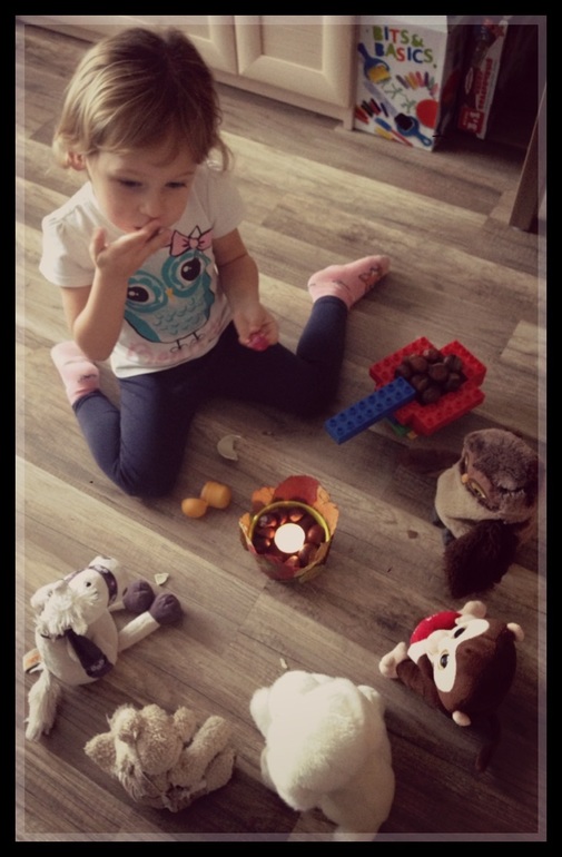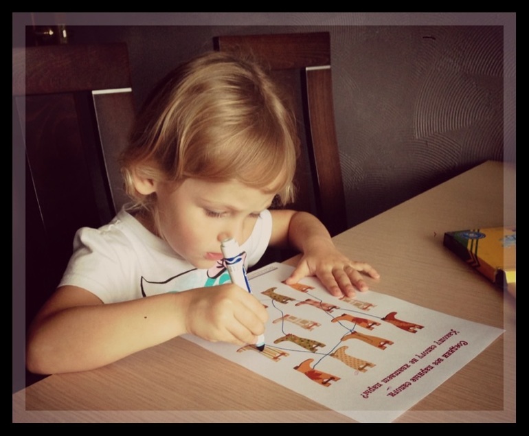 Это, наверно, одно из затянувших Леру занятий, потому что были краски и кисточки) Тут она может творить долго... Так и произошло!