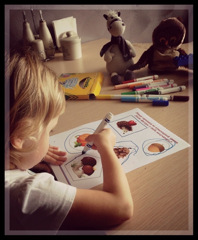 И вот уже практически закончив сбор каштанов, сова встретила лошадку, которая предложила Лерунчику выполнить несколько осенних заданий... Найти пары для разноцветных сапожек, рассказать о предметах, характеризующих время года осень, обвести по пунктирной линии геометрические фигуры и т.д.