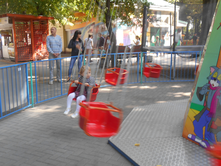День рождения решили праздновать в кругу самых близких людей- крёстных и бабушек и дедушек- но крёстные были заняты, поэтому решили с бабушками и дедушками посидеть вечерком, а так как это Верин день, то безусловно нужно было организовать праздник в первую очередь для неё: утром позавтракав и принарядившись, мы отправились в парк развлечений на аттракционы. Зная Верину любовь ко всему такому движущемуся, мы не прогадали с таким подарком- наша обезьянка прыгала от одного аттракциона к другому без устали)))) Праздник удался!!!!