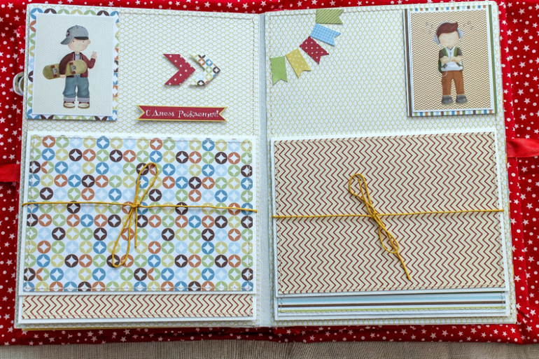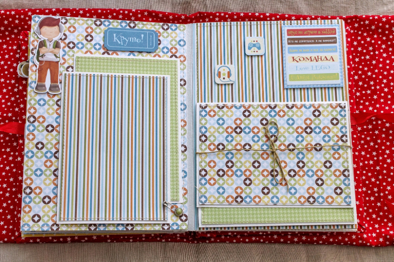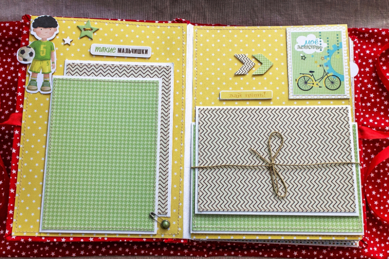 Самый яркий мой альбом из бумаги Скрапмир "Такие мальчишки". Для Гриши, старшего братика маленького богатыря Матвея. Мама попросила альбом со спортивной тематикой и эта бумага подошла как нельзя кстати. Обложку я сделала вспоминая свое детство. Только ветер, облака и велосипед.