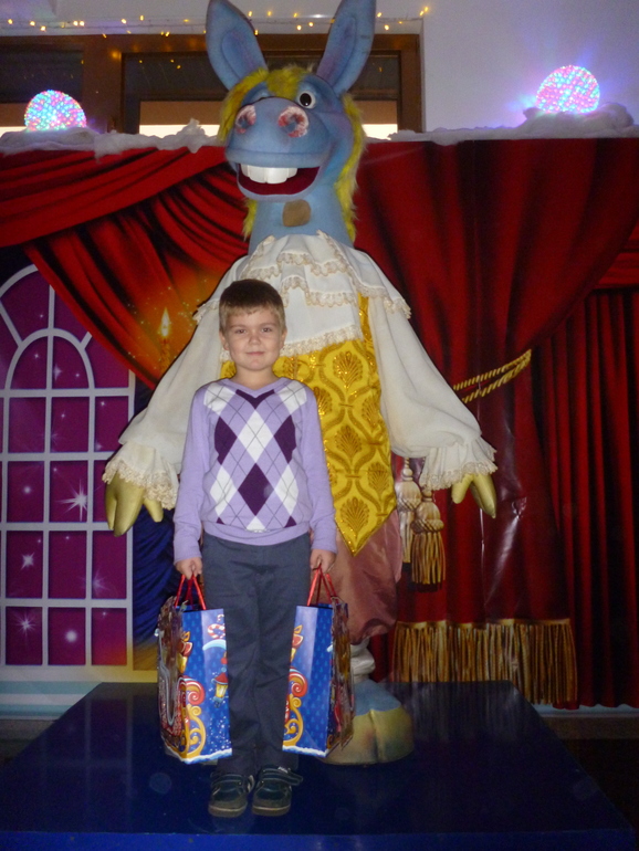 В этот раз программа была совсем уж малышовая. Никакого интерактива. Само представление длилось около часа. Чуть меньше. Ощущение какой то незаконченности( В этот раз меньше плясок - больше мультиков. Но главное детям понравилось! И просят еще) ну и конечно первые подарки)))) Маратка с тепой не расстается.