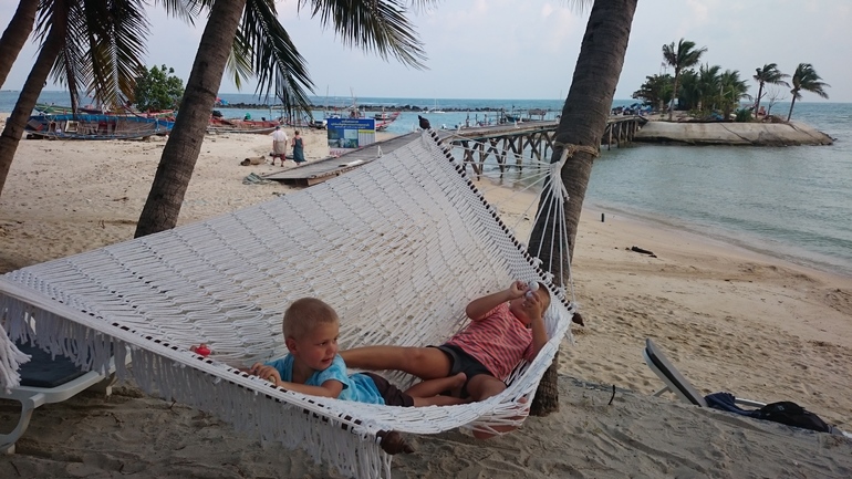 Таиланд 2016 веснаПапа улетел и у нас стало много свободного времени по вечерам) Иногда идем и плаваем на закате. Но чаще дети выбирают прогулки) А я и рада) Обожаю ходить пешком)