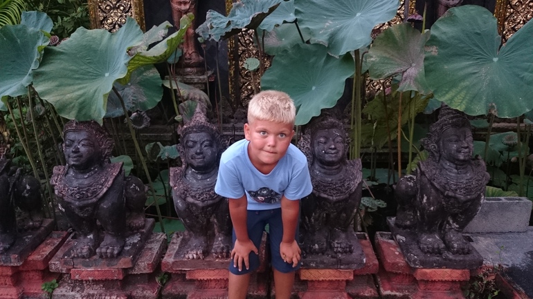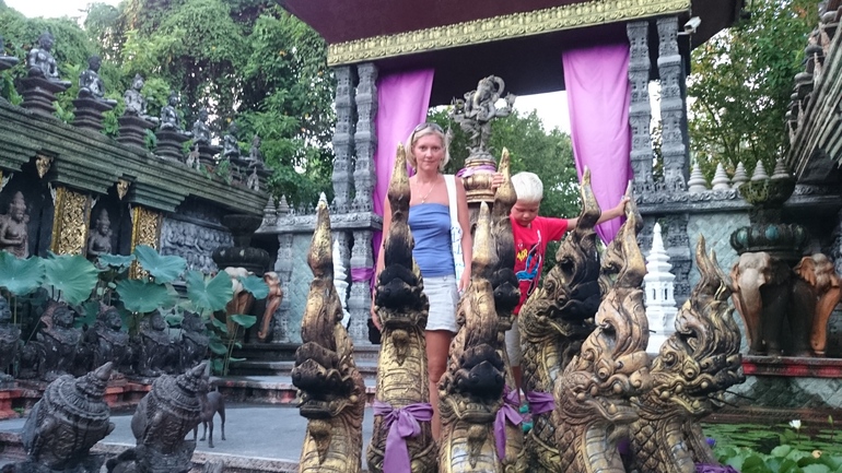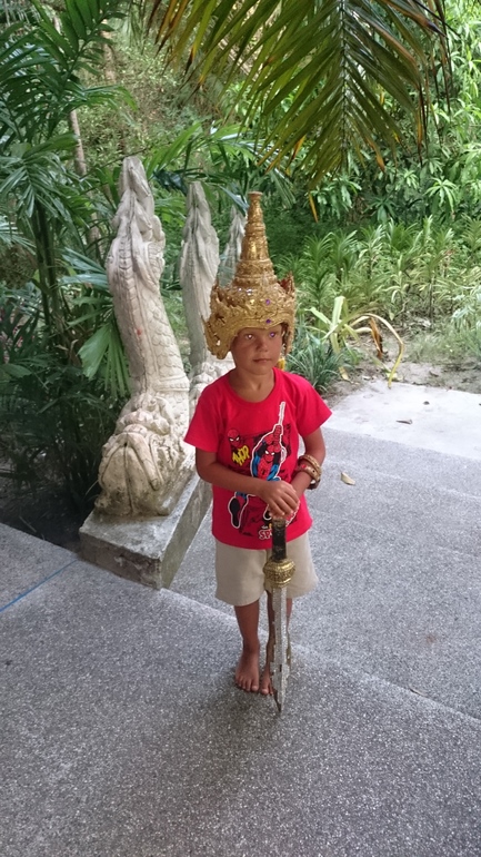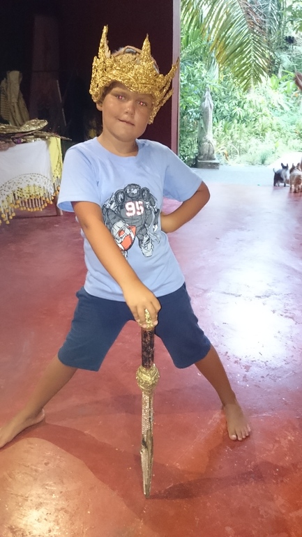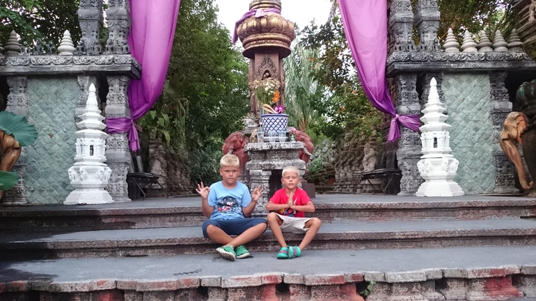 А потом мы зашли в "комнату сокровищ" так ее обозвали дети) Там можно переодется в тайские национальные костюмы и фоткатся сколько душа пожелает)))) Тут дети оторвались)))) Даня побежал к страшным маскам и мечам. А Марат.....к бусикам и браслетикам)))))))