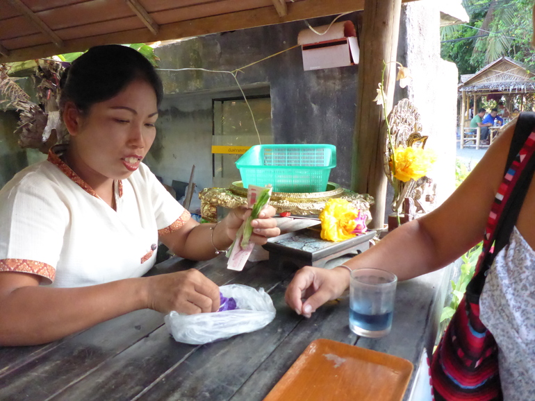 Находится он на Липа Нои. Найти достаточно просто. Раньше вход был бесплатный. Сейчас 120 батт за взрослого. Дети бесплатно. На входе дают какой то голубой чай в мутных стаканах и прохладное полотенце.