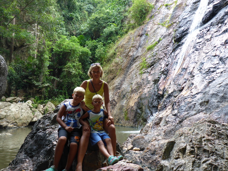Мне кажется что если бы я детей не удерживала....то они бы с радостью перелезли к слонам!) Страха нет абсолютно никакого. Проторчав возле слонов около часу мы решили все таки дойти до водопада. Благо он совсем рядом!) Ну и были мы на нем уже в прошлом году.