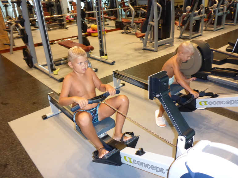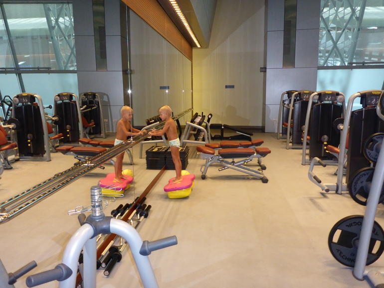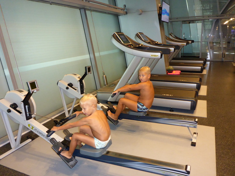 Там же есть большой спортивный зал. Можно нанять инструктора и заниматься с ним. Можно самим. Так же можно заказать массаж.