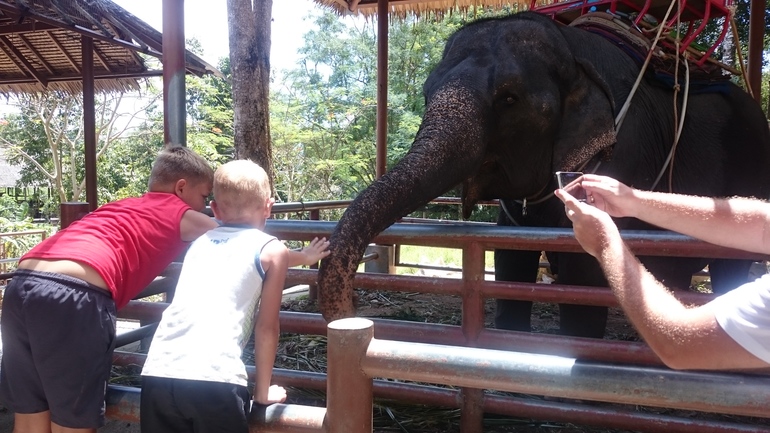 2 француженки, посмотрев с какой легкостью дети кормят и гладят гиганта, решили что им можно все. И напролом зашли за первое ограждение. За что не хило получили хоботом по голове пару раз, да так что одна из туристок чуть не упала.Быстро убежали. (вообще мне тут попадаются исключительно неумные французы! не знаю почему)