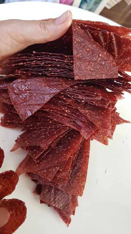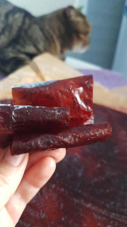 Примерно на кг клубники - полстакана сахара....чуть нагреваю...чтобы сахар светится и все! Выливаю эту массу ( она жидкая) на пергамент и сушу. Чем тоньше тем быстрее высушится. Я люблю прям тоненькую.