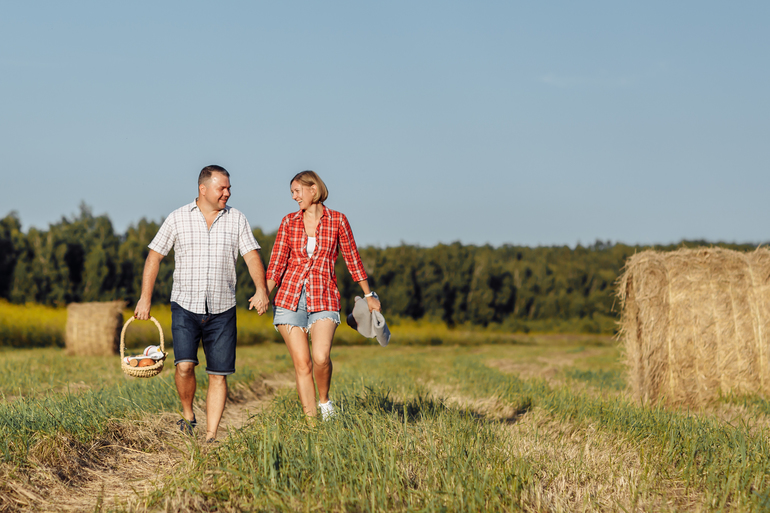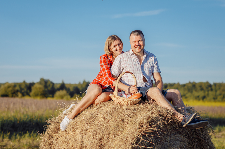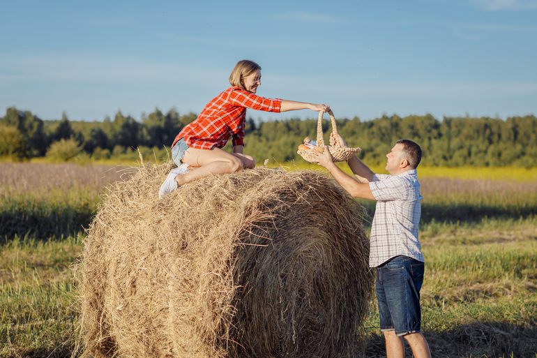 рядом с нами покосили сено...стога....и Тома предложила на закате сходить туда)