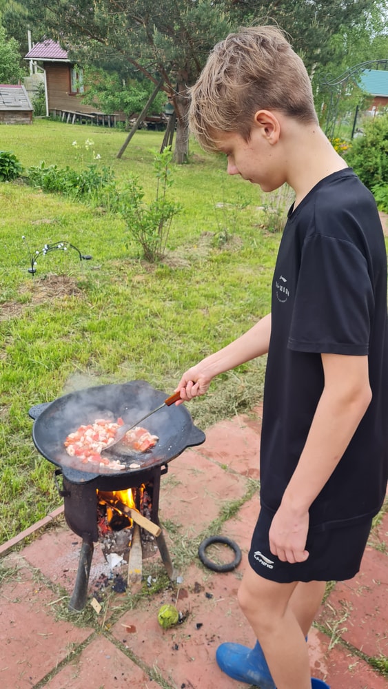 В этот раз на даче мы вдвоём с младшим ребёнком. Старший с папой работают. И учатся самостоятельности)