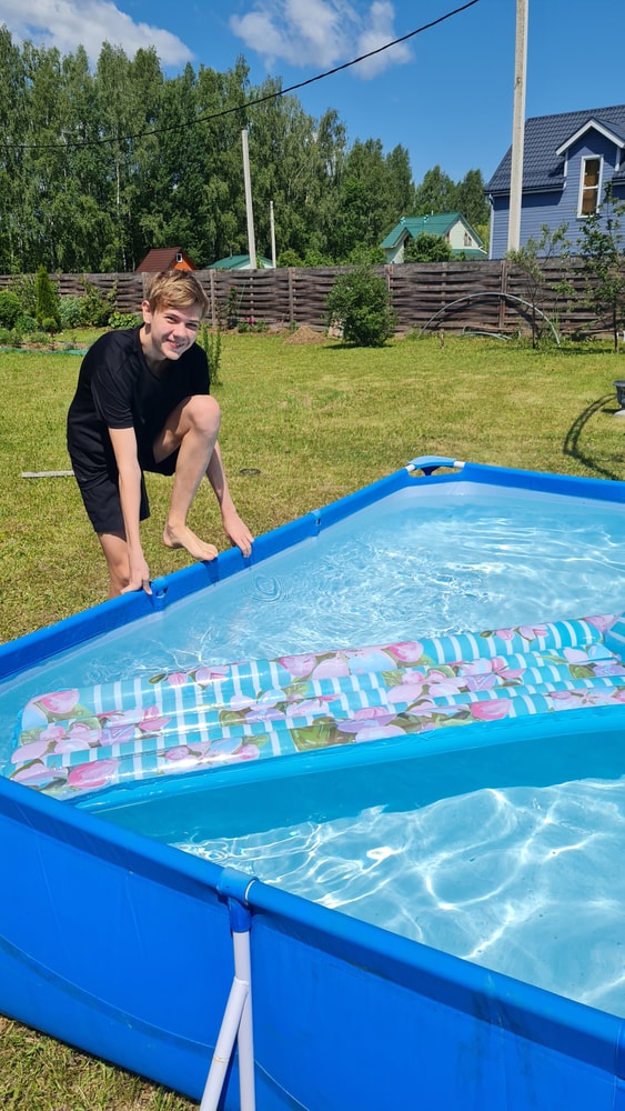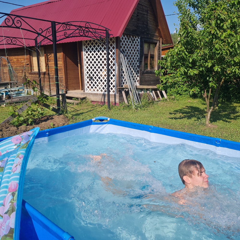 Погода конечно не айс. Но ребёнок потребовал бассейн. Поставили. Сам моет и ухаживает. Я даже не касаюсь его.
