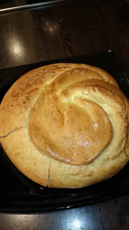 Вымесить тесто, раскатать в блин. Выложить начинку, свернуть в рулет и этот рулет свернуть в кружок)