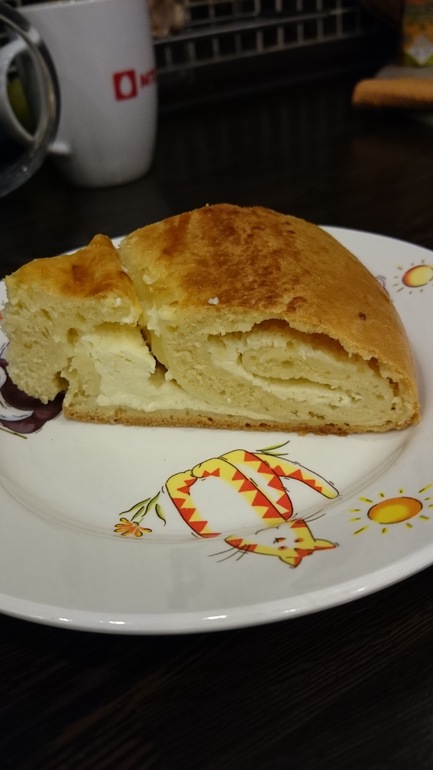 Для начинки: Творог и сметана. Я просто смешала до состояния кашицы, добавила яйцо и сахар. Но кто не любит сладкое то можно и не добавлять.
