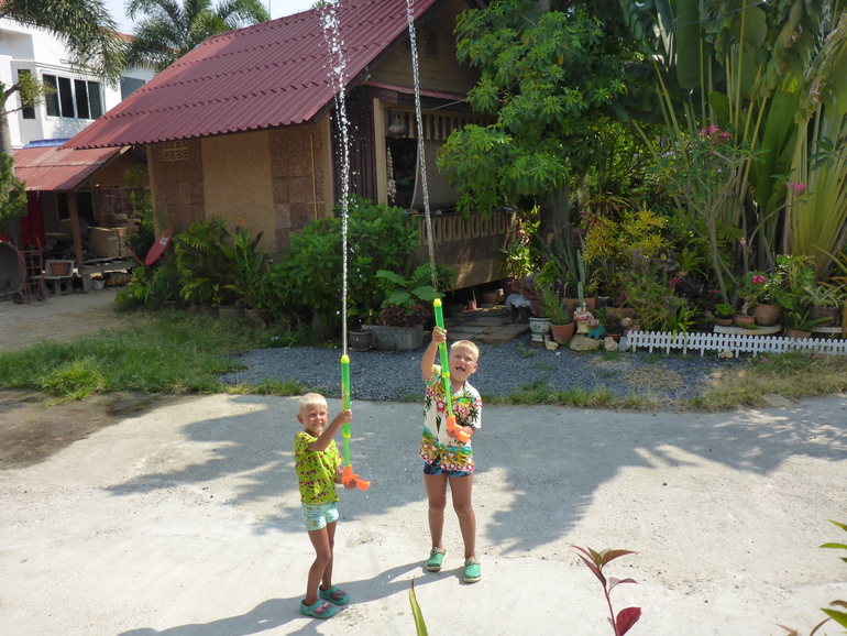 Первый раз мы вышли рано) Еще не было 10 утра. Поливались только европейцы) Тайцы сонно вытаскивали бочки .