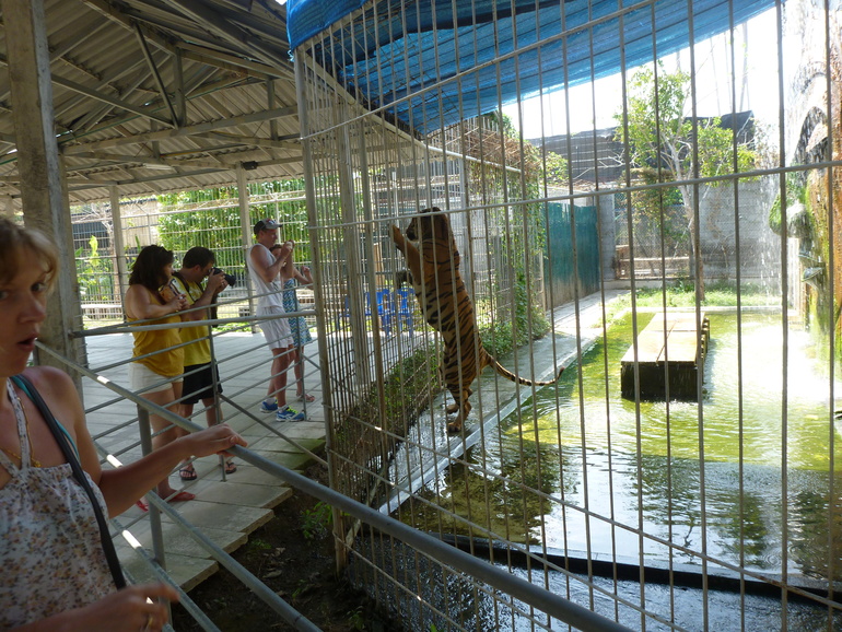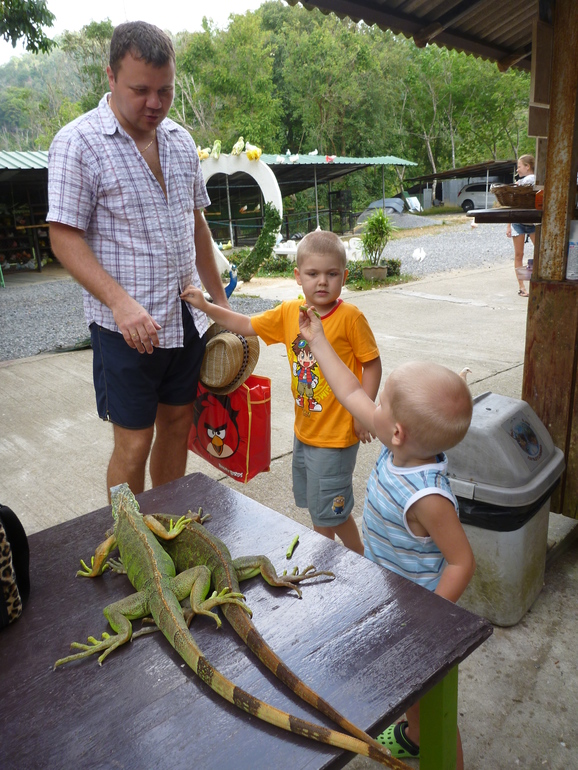 Мы приехали туда рано утром (что для нас вообще геройство). Билеты приятно поразили адекватной ценой (около 500 бат). На входе служащий с тазиком корма для голубей раздавал его мне и детям абсолютно бесплатно)