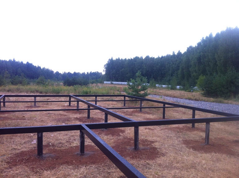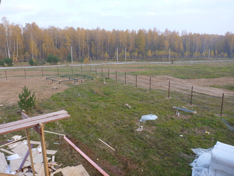 вид с 2-го этажа. Виднеется фундамент бани.