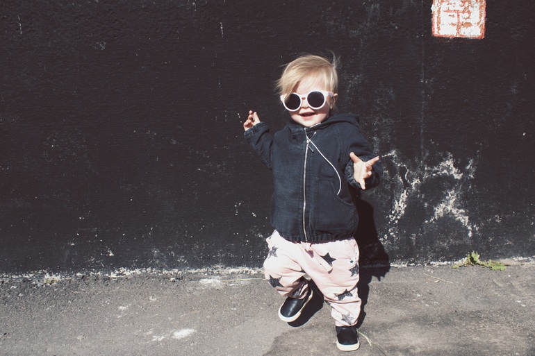 у нас все чудесно , Поля стала совсем большим и умным человеком, все понимает, говорю " выкинь мусор в мешочек" , и она несет выкидывать ) относит всем все, что просят, и прочее.. Знает где кто, где какое животное,предмет. Сегодня научилась сморкаться - посмотрела как я делаю ( я приболела), и начала повторять. Постоянно поет песенку "гагага-нэнэнэ-руруру" не знаю, что это значит, но звучит очень мило)мультики не смотрит вообще, ей просто не интересно, зато очень любит книжки: когда видит на странице знакомый предмет или животное начинает восторженно визжать и кричать) вообще она нереально позитивная , всегда рада всех видеть, улыбается всем прохожим, особенно в транспорте ко всем пристает) научилась залезать на горку на площадке сама и скатываться - самок любимое занятие после поедания камней)) мы уже собираемся вовсю на дачу- в субботу уезжаем. Эх, надеюсь все пройдет хорошо) а вот фото, решили поучаствовать чтобы не скучать в еще одном конкурсе, называется маленький хипстер. Честно я не сильно старалась, но получилось вроде мило)