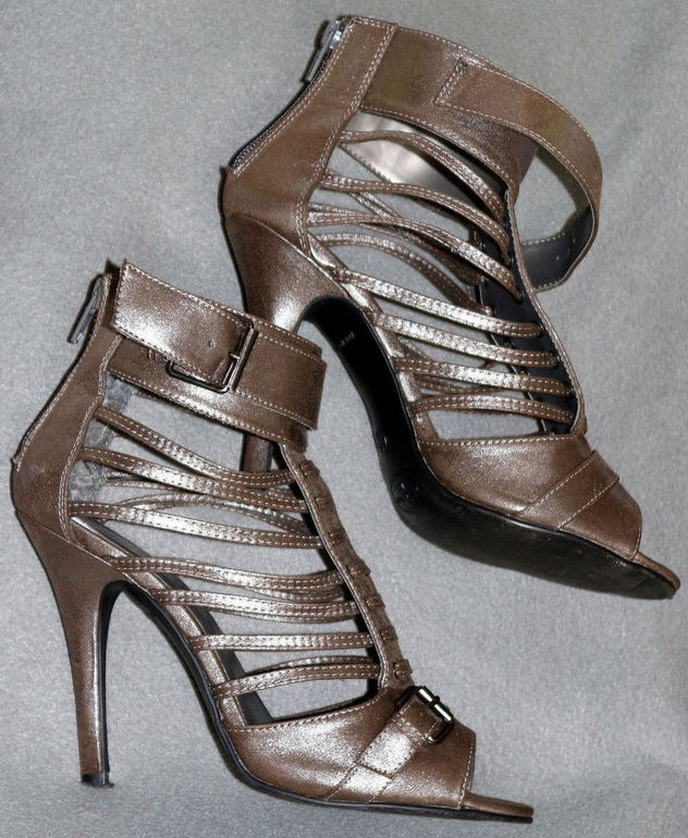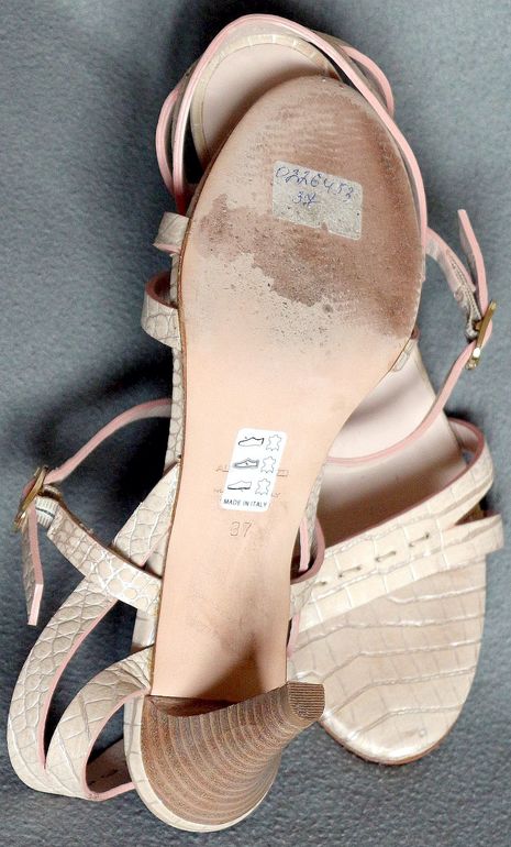 3. Босоножки New Look на молнии сзади. Р-р 38, полнота 5. Материал верха - под замшу. Высота каблука 11 см. Некоторое время занимает правильное распределение тонких ремешков на стопе, зато нога фиксируется идеально. Экв. 500.