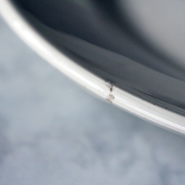 2. Старорежимная форма с антипригарным покрытием. Покрытие повреждено вверху формы оттого, что крышка вкладывалась без прослойки. Экв. 150.