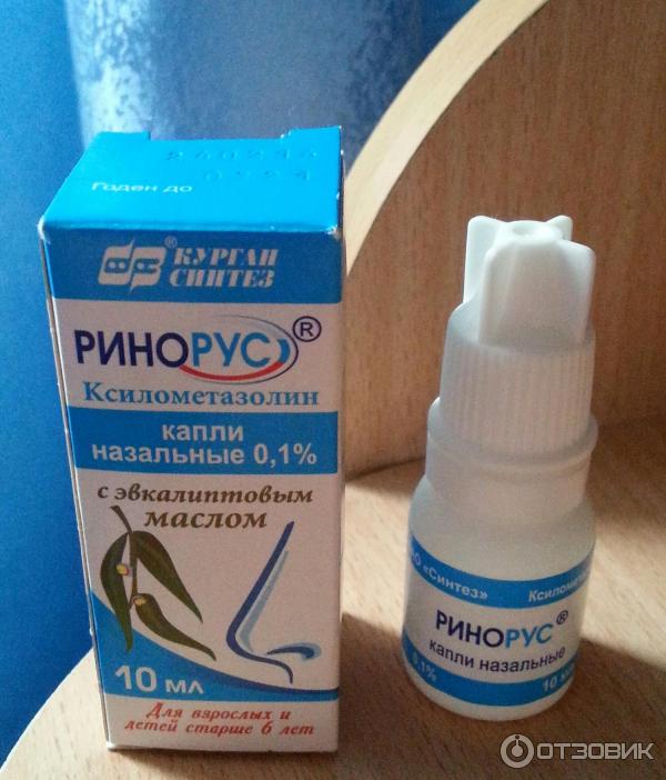 Ксилометазолин 0,1%, капли с маслом эвкалипта, 10 мл (для взрослых и детей с 6 лет, для детей младшего возраста разбавлять вдвое). Экв. 100