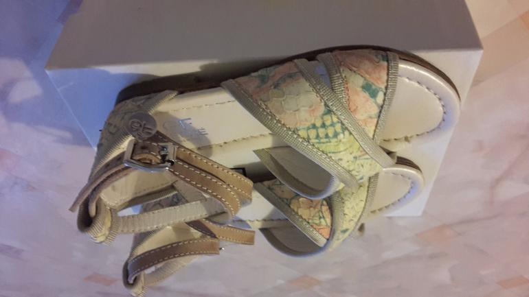 Краснодар . Цена 2500. р. отправка ЕМС, Почта, курьер, СДЭК Невесомые, очень удобные кожаные босоножки..Нежный принт, структура кожи под рептилию. Состояние новых, следы носки только на подошве, одевали 2 раза..Красивая фурнитура с логотипом бренда. По стельке 17 см., до строчки 16.5 см.