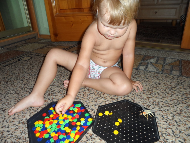 Ну и в завершение пластилинового занятия прячем кузнечика от лягушки.