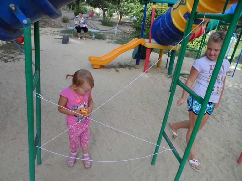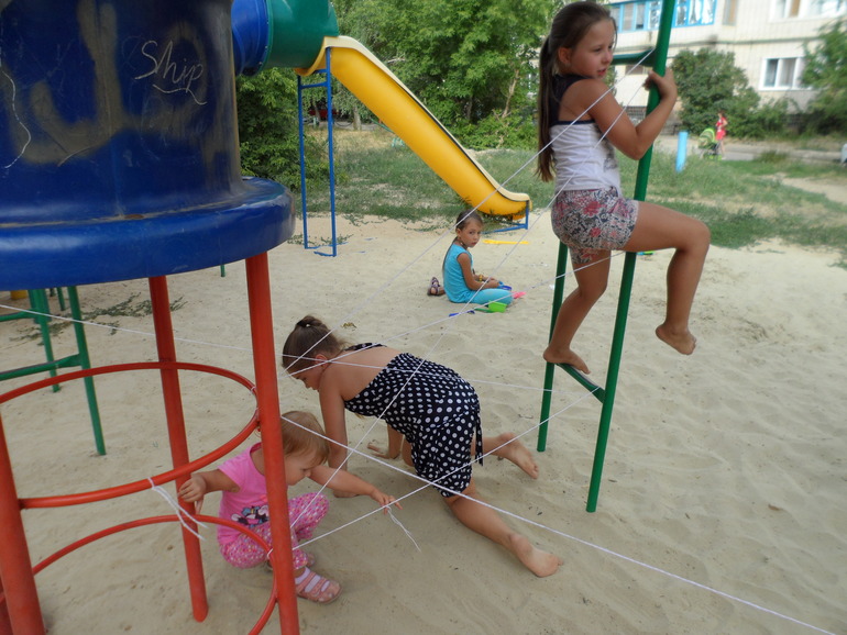 на прогулке плетем паутину и пролазим (ох и понравилось всем это занятие)