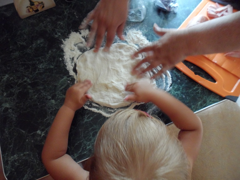 Замесили дрожжевое тесто и помяли хорошенько пальчиком
