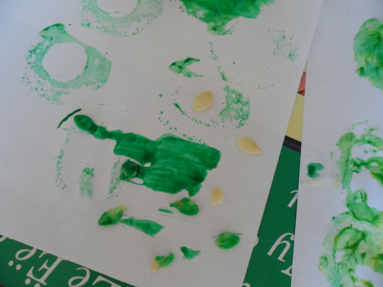 Смешивали краски для получения кабачкового оттенка и рисовали кабачком