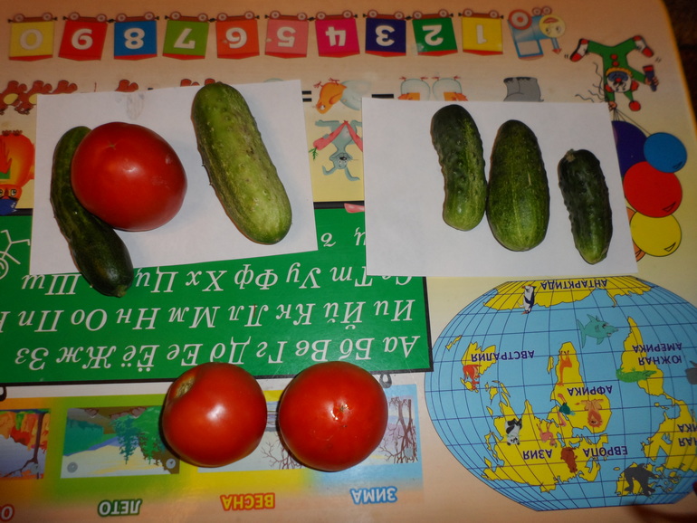 Овощные множества.Интересное занятие, будем продолжать практиковать. Рассмотрели кучки овощей и решили,как сделать так. чтобы стало одинаково.