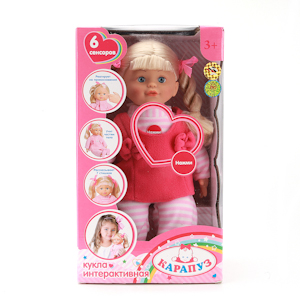 • Дотронувшись до ротика куклы, ребёнок получит от нее воздушный поцелуй.
