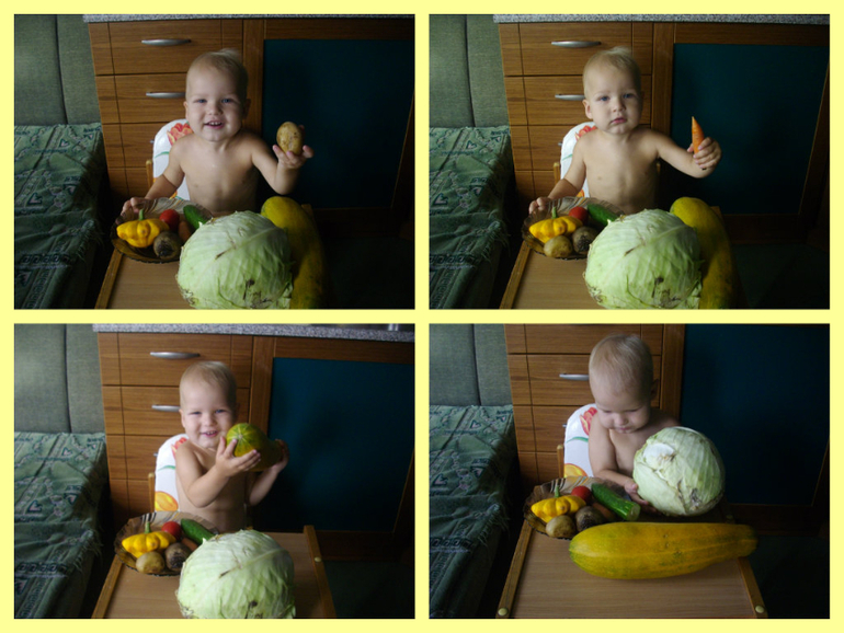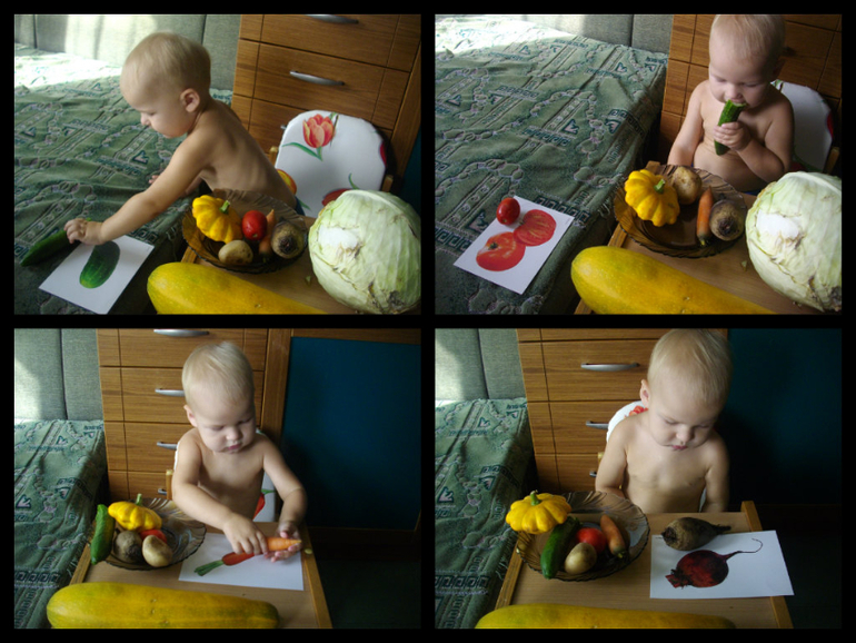 У нас дома оказалось довольно много овощей, осень как никак. Все овощи мы назвали и показали.