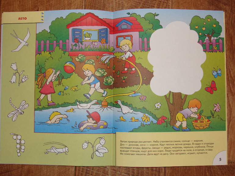 Одна из двух книжек этой серии, которая меня привлекла (остальные откровенно не понравились). Тут на каждом развороте наша любимая аппликация на тему времени года и небольшое тематическое лото)