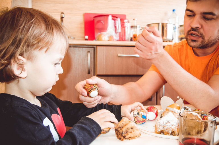 Куличи и яйца со сказочной тематикой прошли на ура: все куличи в зоне доступа надкусаны, все "сказочные яйца" почищены и съедены папой