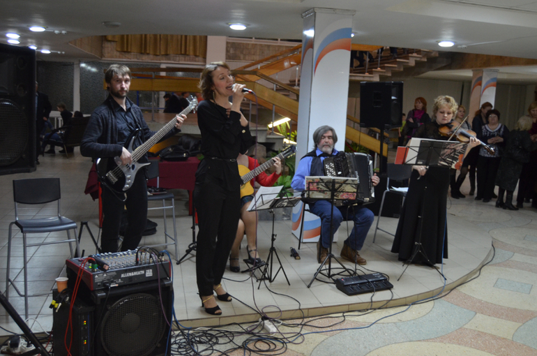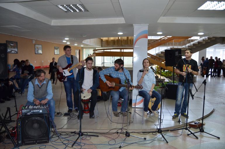 Пришли в 18.00 на альтернативную площадку в фойе, слушали группу "ПроYOU", Даня оценил солистку Юленьку Симонову