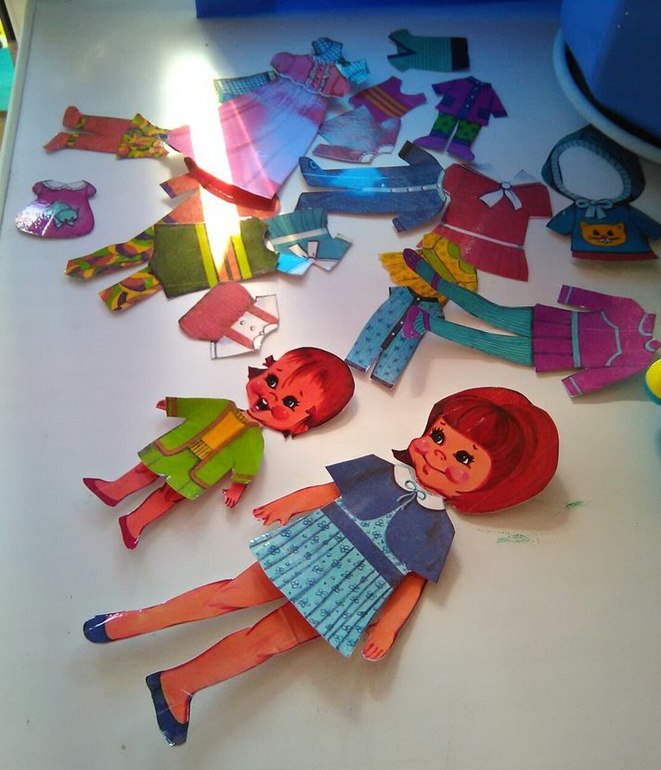 Распечатала куколок, из огромного выбора Полинка выбрала 2 сестер. Обклеила их скотчем вырезала