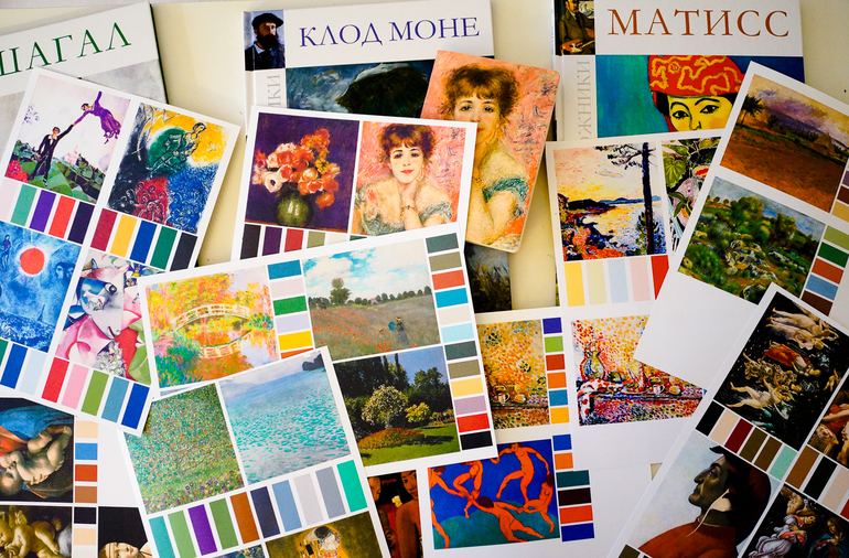 В комплекте картины Боттичелли, Леонардо, Климта, Матисса, Ренуара, Моне, Марка Шагала.