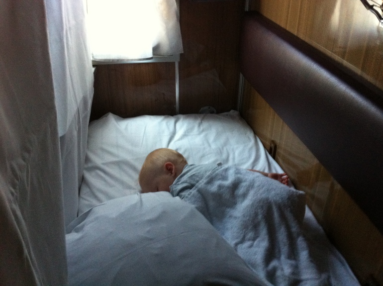Муж отправился из Армавира до Туапсе на машине, (так как любит, чтобы машина была под рукой, да и с ребенком было бы удобно, если что уехать домой). Мы с Яриком - на поезде. Яр ужасно переносит поездки в машине и я надеялась, что в поезде будет лучше. В общем-то было лучше, но не намного, не было истерики, но был постоянный нудёж, потом как в своем купе Ярику было скучно и он перся во все открытые двери, а, к сожалению, не все люди рады шумным улыбчивым младенцам, приходилось его оттаскивать, и Яр нудил и нудил.