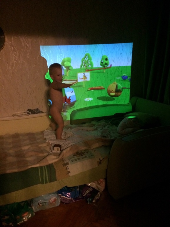 А ещё у нас домашний кинотеатр, муж смотрит футбол на балконе теперь, Яру показываем мультики (лучше бы книжки полюбил). И простите за голопопость:-)