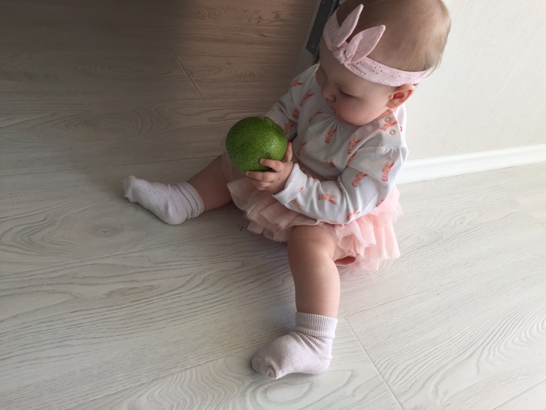 за это время она научилась спать всю ночь чему я очень рада) за 10 месяц мы начили активно садиться и вставать у опоры, также очень уверен ходит у опоры) сама может простоять 5-7 секунд. для меня это шок, никак не укладывается в голове, что скоро моя девочка будет ходить!!!