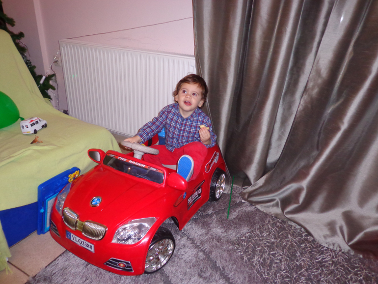 Больше всего ему понравилась огромная машина Яниса! Он весь вечер на ней катался!!!